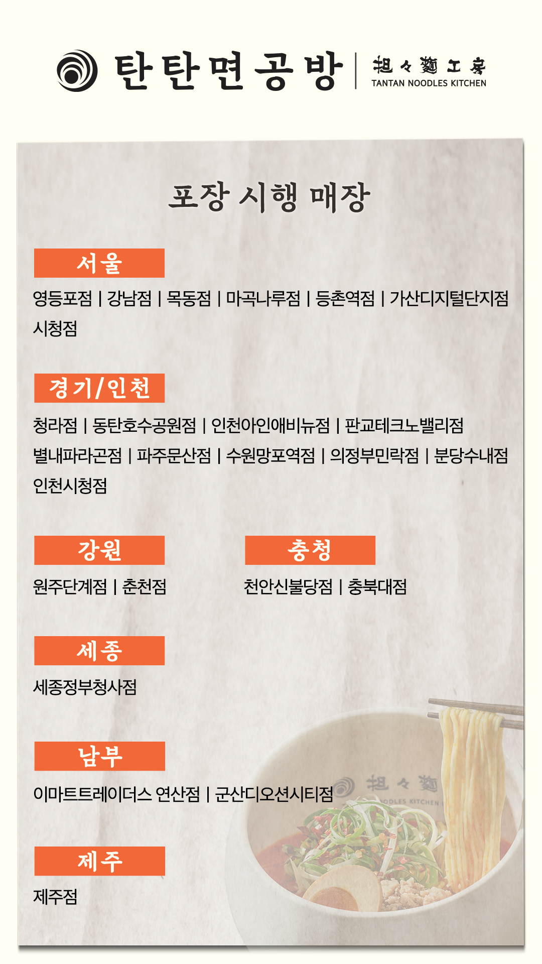 탄탄면공방 전국 포장·배달 시행 매장 안내(25.12.24 업데이트)