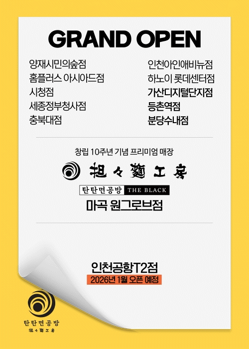(2025.08.11) 10주년 기념 프리미엄 매장 '탄탄면공방 더 블랙' 마곡 원그로브점 오픈!